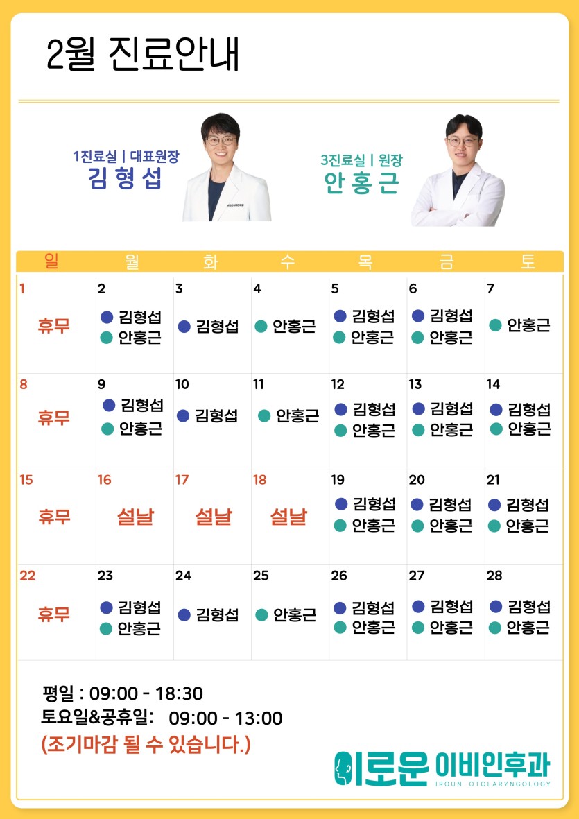 2월 진료안내 페이지 정보 작성자 최고관리자 댓글 0건 조회 157회 작성일 26-01-28 15:21 목록 답변 글쓰기 본문 . 이전글3월 진료안내 26.02.27 다음글1월 진료안내 25.12.31