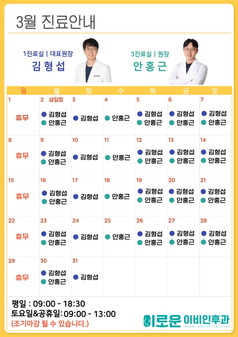 3월 진료안내 페이지 정보 작성자 최고관리자 댓글 0건 조회 186회 작성일 26-02-27 11:29 목록 답변 글쓰기 본문 . 이전글4월 진료안내 26.03.26 다음글2월 진료안내 26.01.28